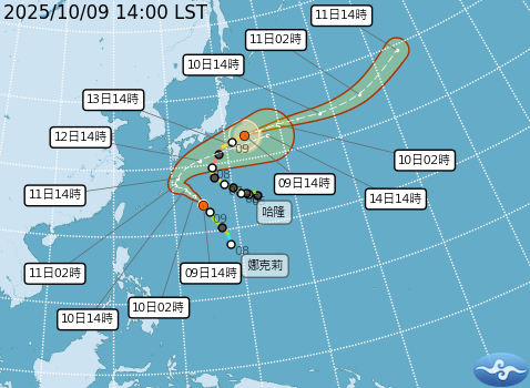 民國114年10月09日14時 颱風消息
