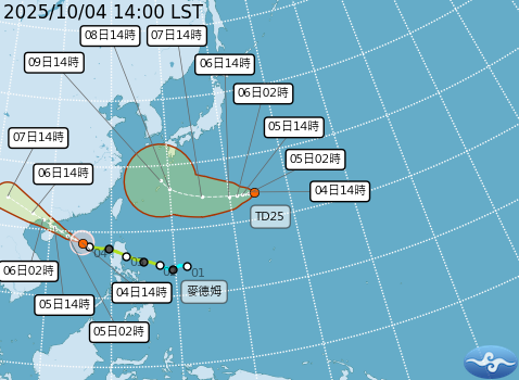 颱風外圍雲系東屏有陣雨,東半部南部留意長浪